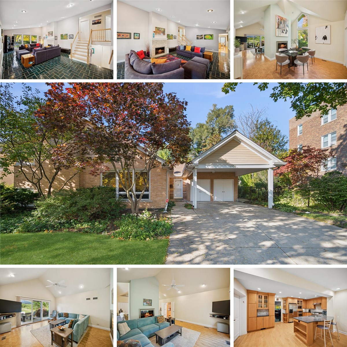 Thoughtfully expanded split-level on double lot in desirable Skokie Devonshire Manor neighborhood. Move right into this beautifully expanded 3 bedroom, 3 bath home perfectly designed for entertaining and comfortable everyday living. The main level features a spacious living room with vaulted ceilings, a wood-burning fireplace with a stone surround and abundant natural light. The open-concept dining and family room share a striking two-sided fireplace and offer seamless access to the patio and yard through sliding doors. The huge eat-in kitchen is complete with custom wood cabinetry, granite countertops, stainless steel appliances, wood floors, a decorative tile backsplash, breakfast bar and custom buffet. A generous eat-in area with sliders opens to the yard, making indoor-outdoor entertaining seamless. Upstairs, the expanded primary suite impresses with a vaulted ceiling, walk-in closet and sitting area. The luxurious bath is flooded with natural light from skylight and features a large walk-in shower and quartz-topped vanity. Two additional bedrooms with organized closets share a stylish updated hall bath. The lower level offers a flexible family room or office area with fireplace, along with a full bath and laundry room. Outside, enjoy a private, expansive yard on a double lot, complete with a patio and carport with ample storage. This home offers the space, updates and layout you've been searching for - all in a prime Skokie location close to parks, schools and transportation.